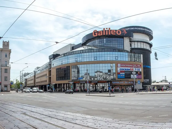 Минский центральный автовокзал состоит из пяти уровней: в подземном находятся технические помещения и камеры хранения, часть первого этажа заняли собственно помещения вокзала – зал ожидания, международные кассы, другие помещения для пассажиров и работников автовокзала, оставшуюся часть первого и три верхних этажа заняли торговый комплекс Galileo, включающий в себя брендовые магазины, бары, кафе, ресторан и кинотеатр. Значительную часть вокзального комплекса занял пятиуровневый паркинг на 500 машино-мест.